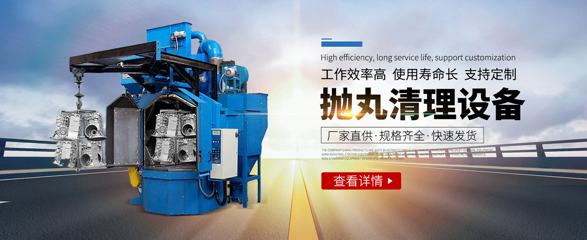 本公司主要产品有:Q32系列抛丸机、Q35系列抛丸机、Q36系列抛丸机、Q37系列抛丸机、Q38系列抛丸机、Q69系 列 抛丸机、QH系列通过式等抛丸清理机,大型人工喷砂房,S11系列混砂机,各种型号的特种合金耐磨铸件、配套件。